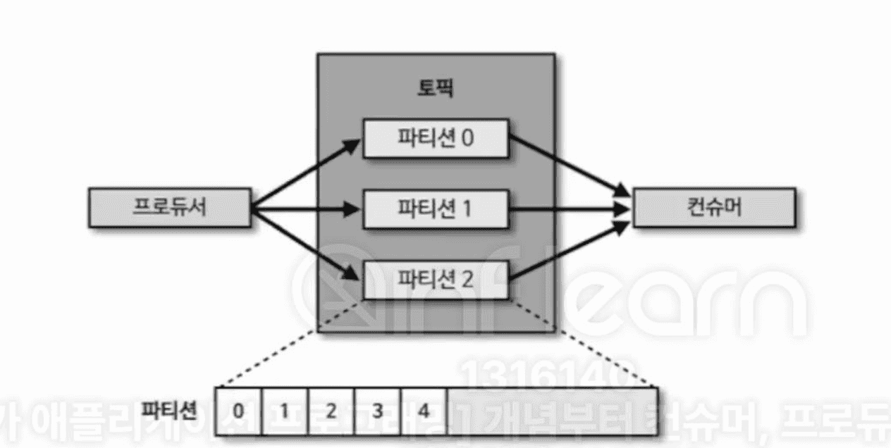 - 파티션의 내부 구조는 Queue 구조로 이루어져 있다. 다시말해, FIFO 의 특징을 갖는다.