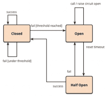 Closed: 요청 실패율이 정해놓은 임계치보다 낮은 상태로, 평소대로 모든 요청이 처리된다.Open: 요청 실패율이 정해놓은 임계치보다 높아진 상태로, 서킷 브레이커가 열린 경우, 요청을 보내지 않고 즉시 실패 처리한다.Half Open: Open 이후 일정 시간이 지나면 Half Open 된다. 이 상태에서 요청이 성공하면 Closed 상태로 변경되고, 실패하면 Open 상태를 유지한다.